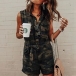 Fashion Sleeveless POLO Collar Camouflage Printed Romper (The size falls small)