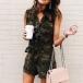 Looking sassy is never hard for you if you have this romper in your team. It is designed with camouflage printed details,stylish and popular. Outfitted with sleeveless,POLO collar and waist strap design,this romper can offer you an effortless cozy and stylish daily style.