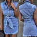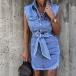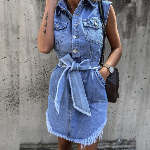 Fashion Sleeveless POLO Collar Irregular Frayed Hem Denim Dress