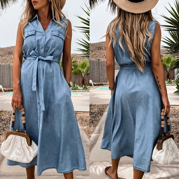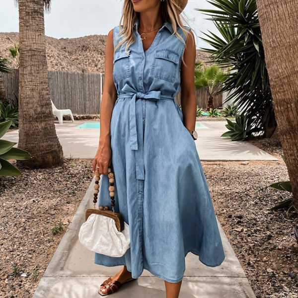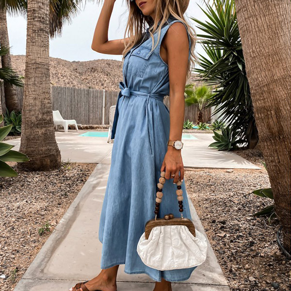 When the summer season hits,this sleeveless dress can easily strike your mind. Finished with sleeveless,POLO collar and single-breasted design,this dress knows how to give you a cool and comfortable day with its soft and breathable fabric. Comes with a waist strap design,this dress also can showcase your perfect waistline.