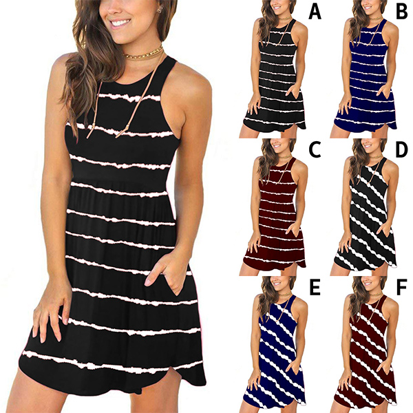 The perfect combination of cozy and style,this dress is worth to have a place in your summer wardrobe. The color gradient stripe element design makes this piece look so stylish and attractive. Crafted from soft and breathable fabric,with sleeveless and round neck design,this dress can ensure you a wonderful day.