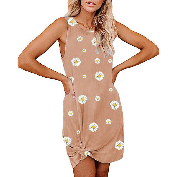 This cozy yet stylish tank dress is perfect fit for your summer days. The daisy printed details make this piece full of fresh and stylish vibes. Crafted from soft and breathable fabric,with sleeveless,round neck and a loose silhouette,this dress can give you a cool and comfortable day. You can make a knot at the hem if you wanna look more distinctive.