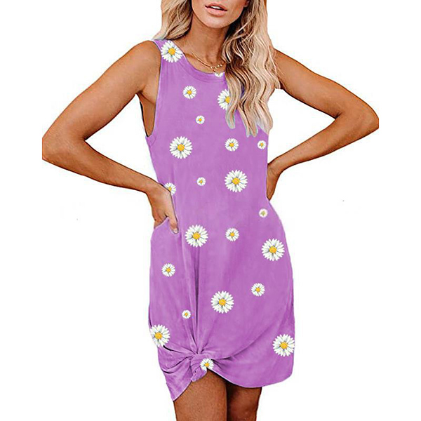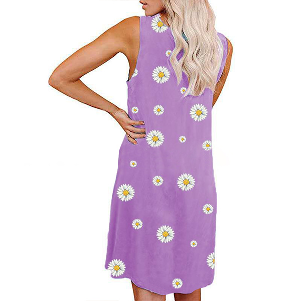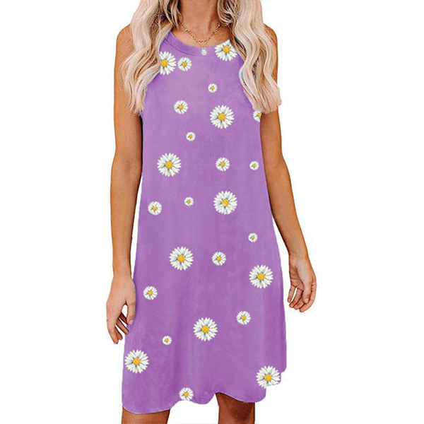 Fashion Sleeveless Round Neck Daily Printed Loose Tank Dress