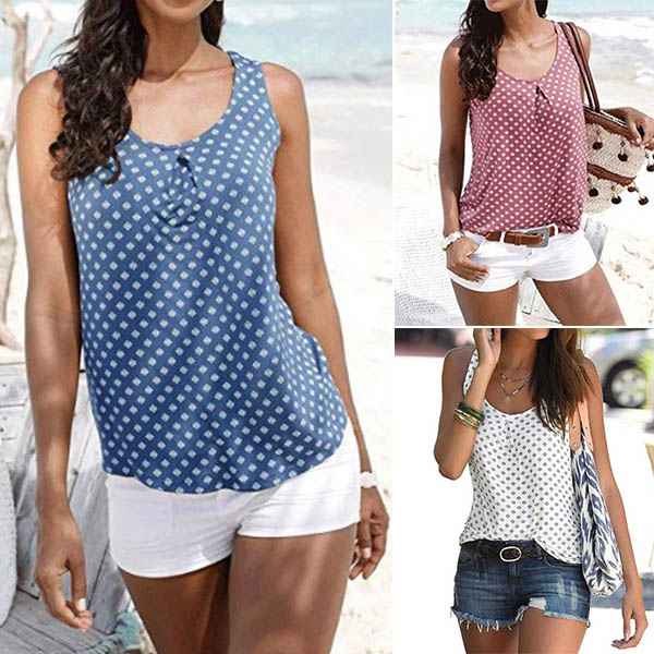 Fashion Sleeveless Round Neck Dots Printed Tank Top
