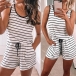 Fashion Sleeveless Round Neck Drawstring Waist Striped Romper