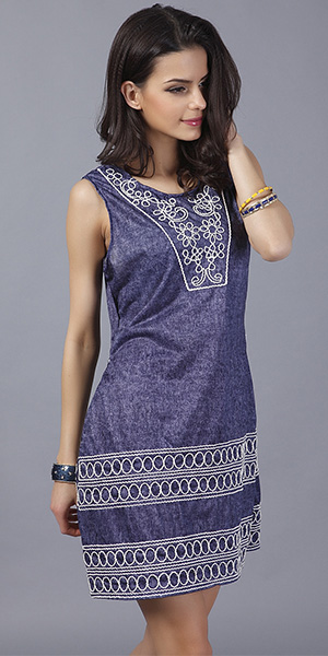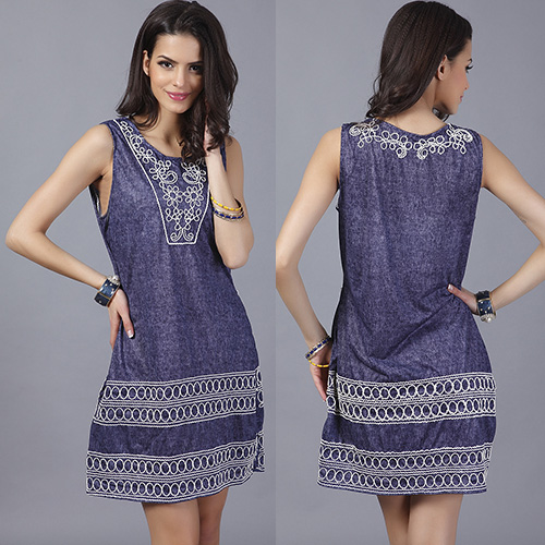 You can enjoy the stylish and comfortable feeling in this dress. It features sleeveless and round neck design,