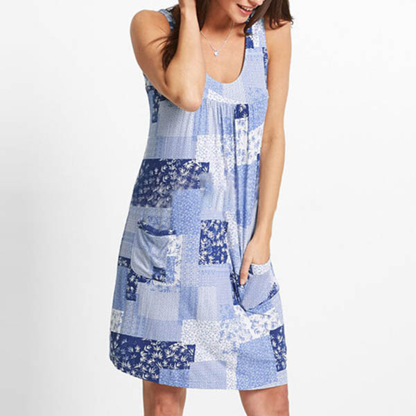 This sleeveless dress is the perfect addition to your warmer weather wardrobe ensemble. This chic printed details make this piece look so stylish and attractive. Finished with sleeveless,round neck,front-pocket and a loose silhouette,this is sure to offer you a cozy yet stylish style.