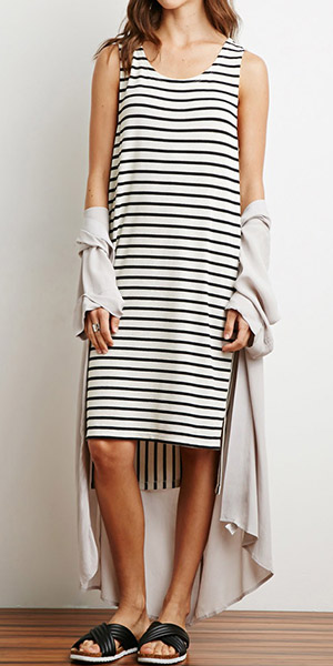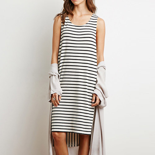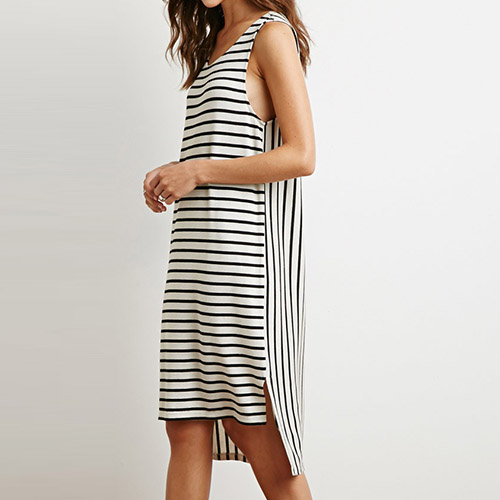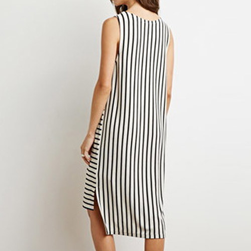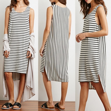 Strolling on your town to enjoy your relaxed weekend with this casual dress. Striped style,with sleeveless,