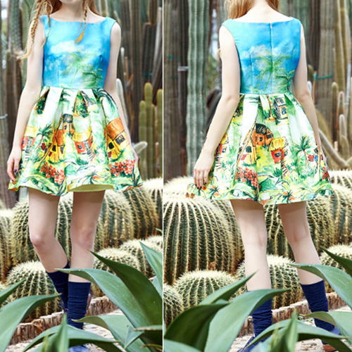 with sleeveless,round neck and high waist design,this dress is bound to make you stand out. So