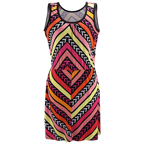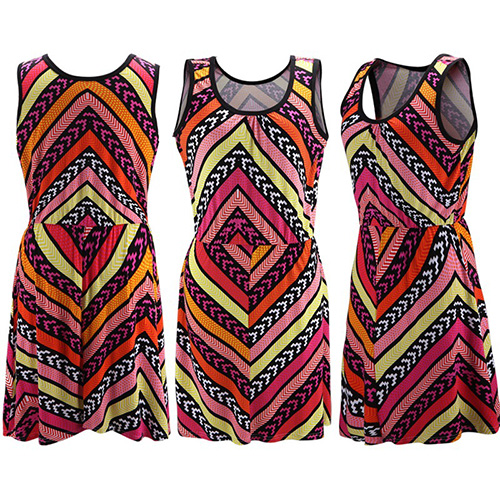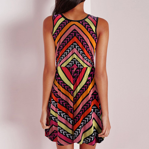 and eye-catching printed pattern,with sleeveless,round neck and high waist design,delicate and stylish.