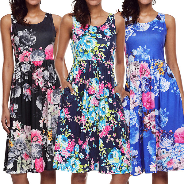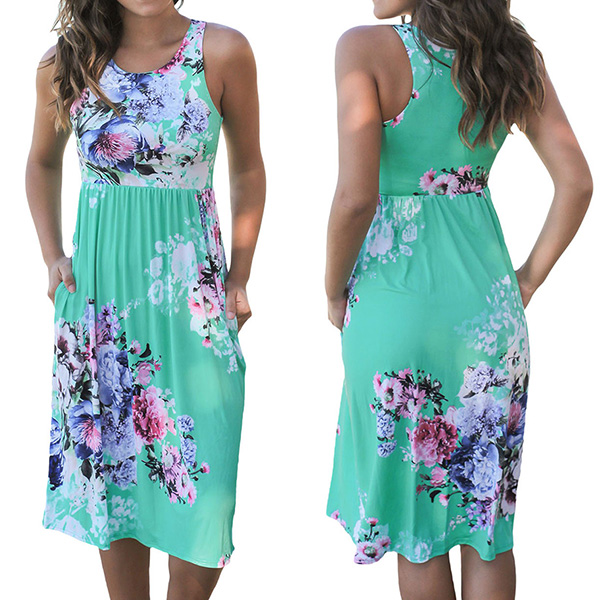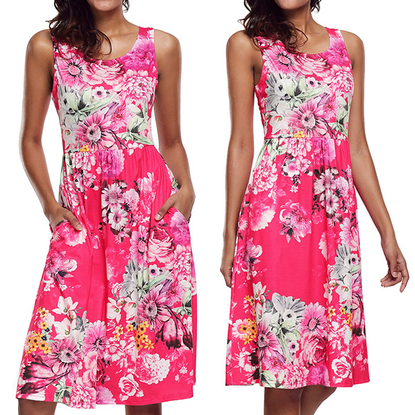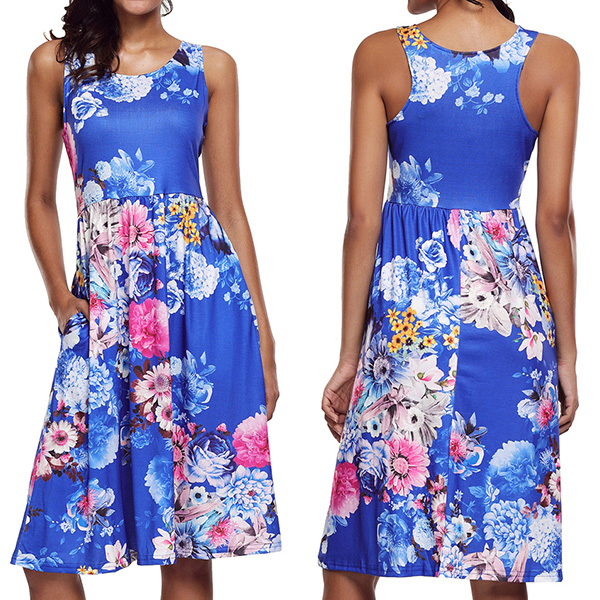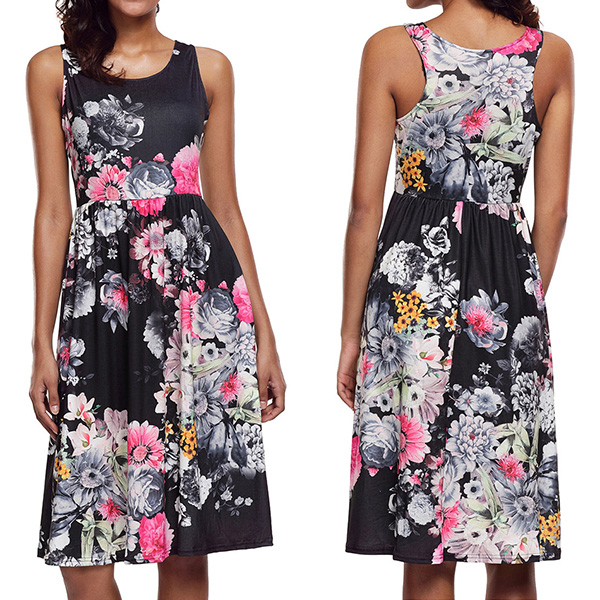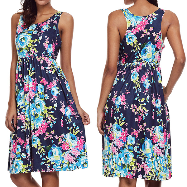 printed pattern,accompanied with sleeveless,round neck and high waist design,this simple dress can give you a
