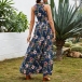 Fashion Sleeveless Round Neck High Waist Printed Maxi Dress