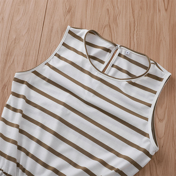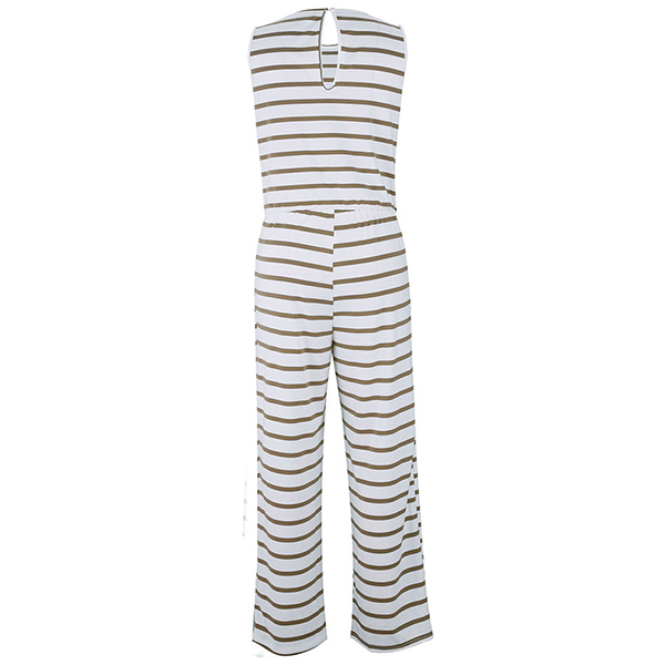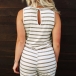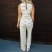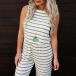 Fashion Sleeveless Round Neck High Waist Stripe Jumpsuit
