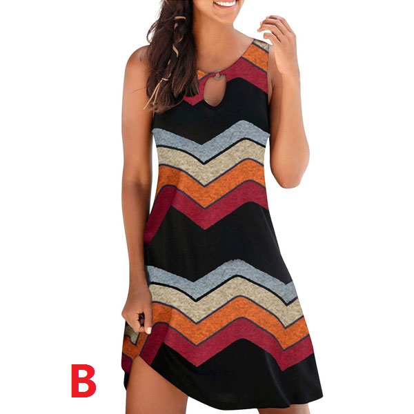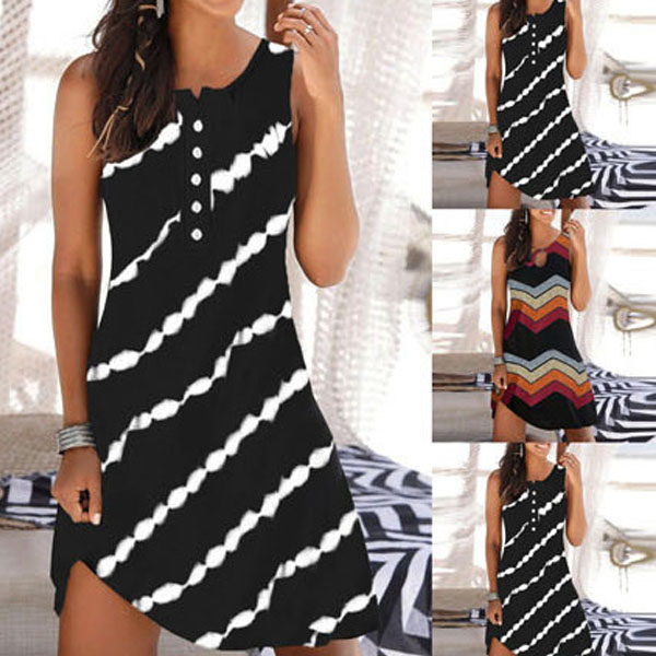 To greet the arrival of the summer days,you can just slip into this relaxed and stylish dress. It is crafted from soft and breathable fabric,with sleeveless and round neck design,this dress knows how to give you a comfortable day. Moreover,the chic printed details and irregular hem design will help you catch more eyes. Your perfect partner in these sun-soaked summer days.