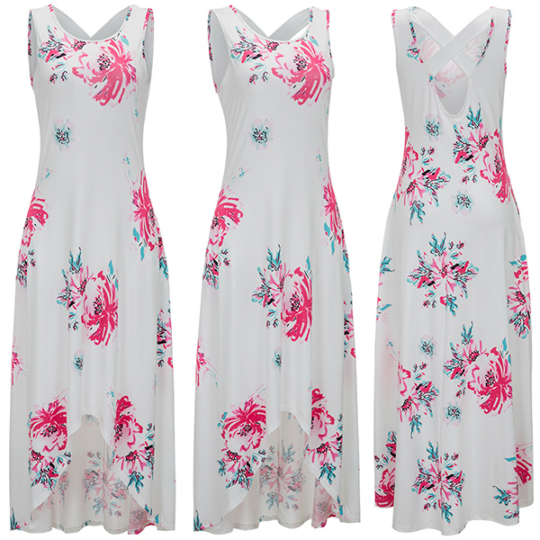 and eye-catching printed pattern,designed with sleeveless,round neck and an irregular hem,cozy yet stylish.