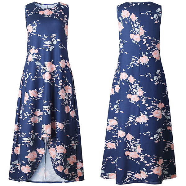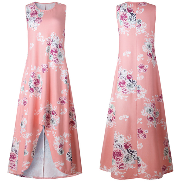 Make your style boost with the help of this dress. Features chic and vibrant floral print,accompanied with sleeveless,round neck,