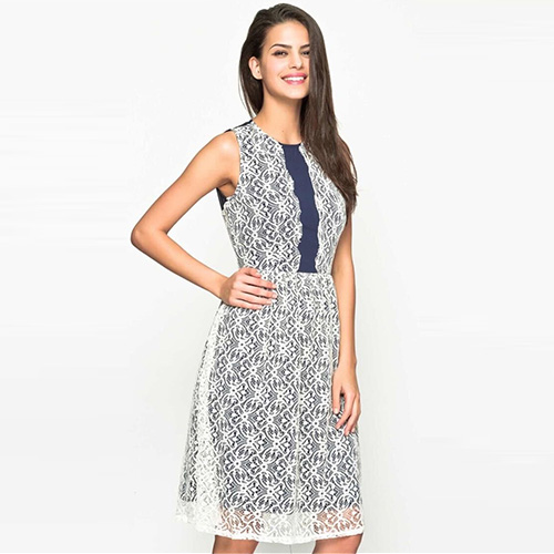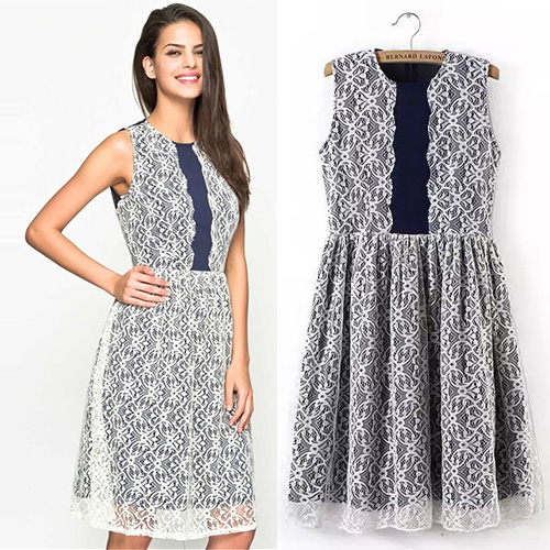 making it look more chic and feminine. Sleeveless,round neck and high waist design.