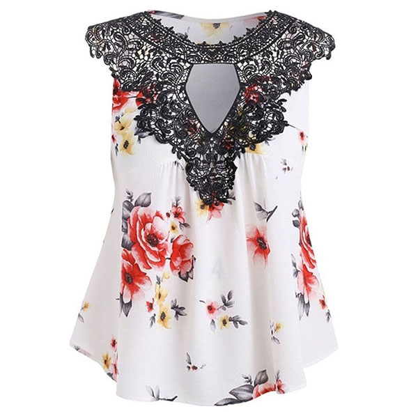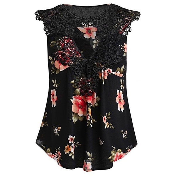 This top boasts vibrant floral print details,which can offer you a more eye-catching look.