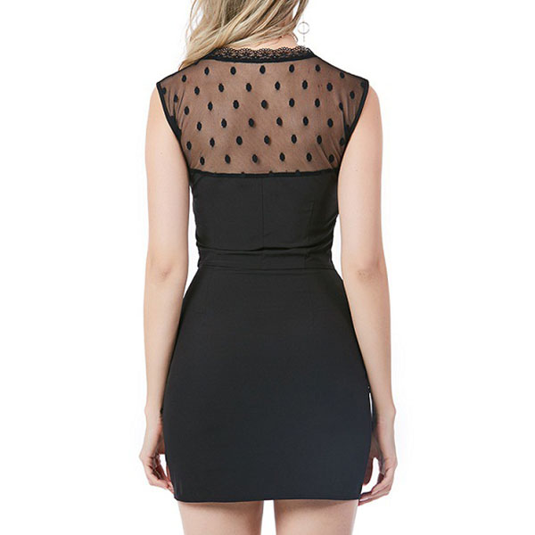 Fashion Sleeveless Round Neck Lace Spliced Slim Fit Dress