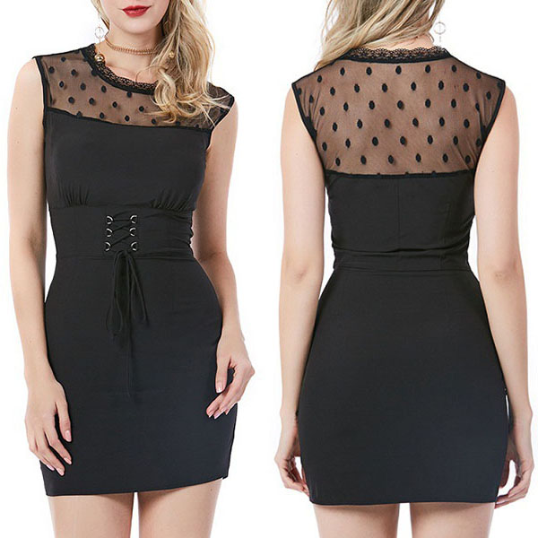 Modestly stylish,while still maintaining its alluring feminine appeal, that's why we love this dress! The flattering black tone,fit silhouette and lace-up design at the waist part can better highlight your slender figure,while the lace spliced design can enhance your feminine appeal. You can express your beauty and femininity through this dress.