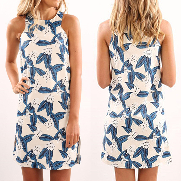 If you have this dress on hand,your busy routine can be mush easier. Its leaves printed details make this piece look not so
