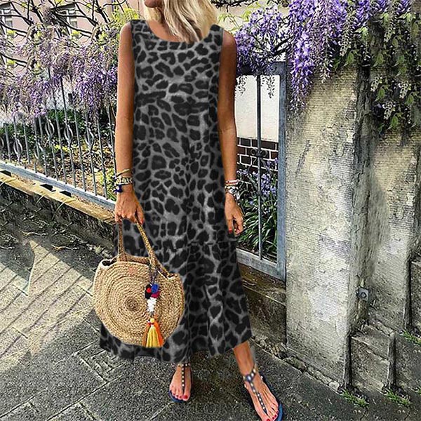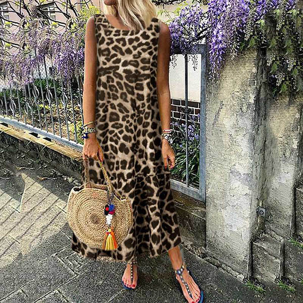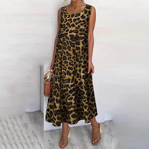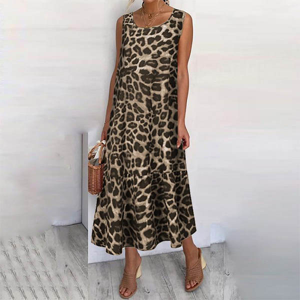 Fashion Sleeveless Round Neck Leopard Printed Dress