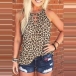 Fashion Sleeveless Round Neck Leopard/Tie-dye Printed Top
