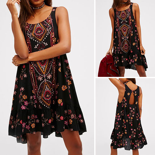 a loose silhouette,this dress of course can give you a cool and comfortable day. And its chic printed pattern gives