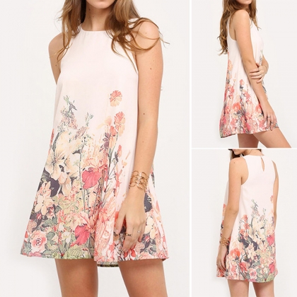 Designed with sleeveless,round neck and a loose silhouette,this dress is a perfect combination of simple,casual,