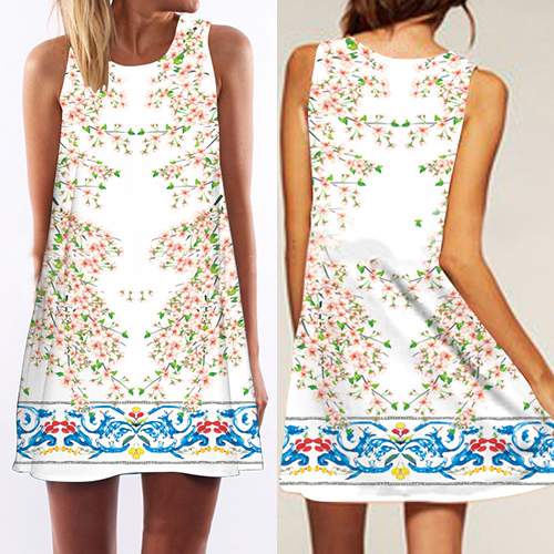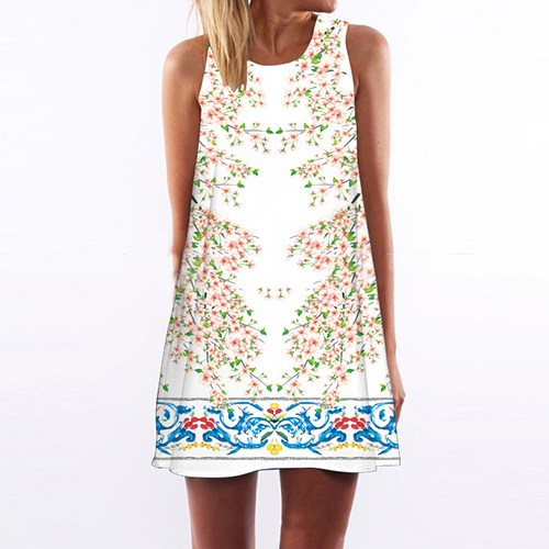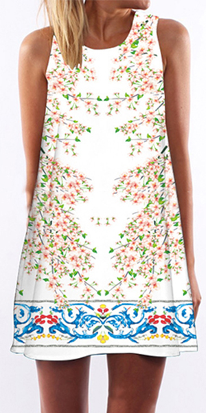 neck and a loose silhouette,this dress can give you a comfort day. And its vibrant floral print makes