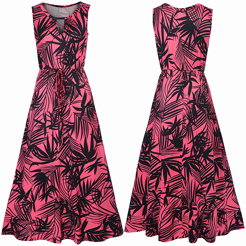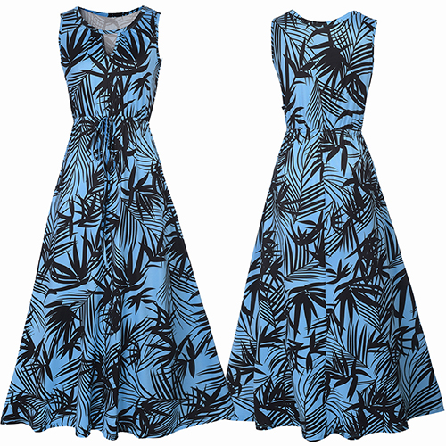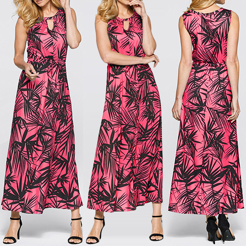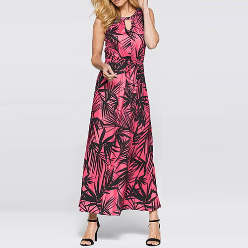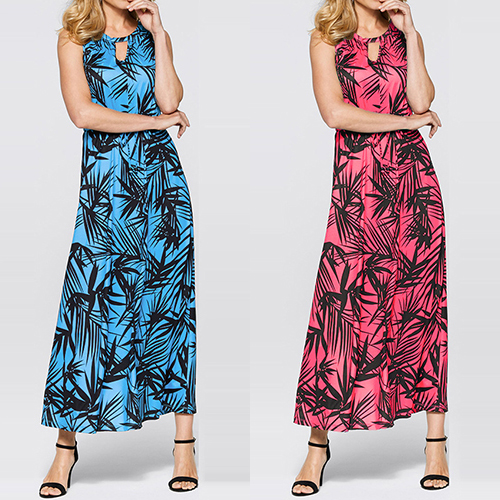 Features chic and eye-catching printed pattern,with sleeveless,round neck and a maxi length,this dress is sure to