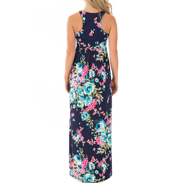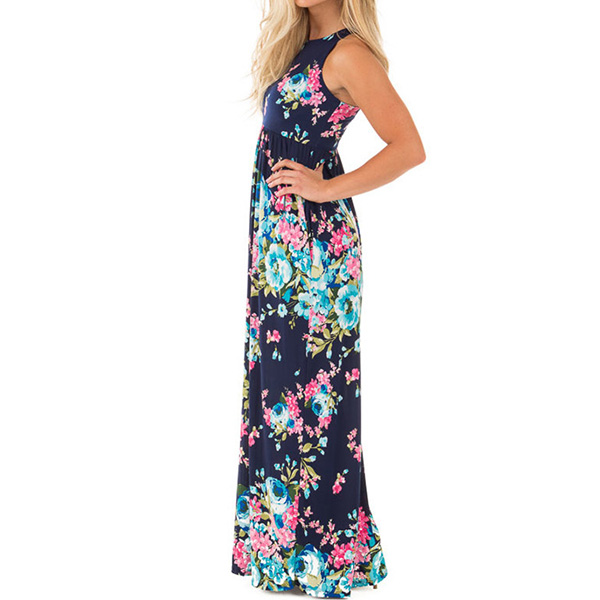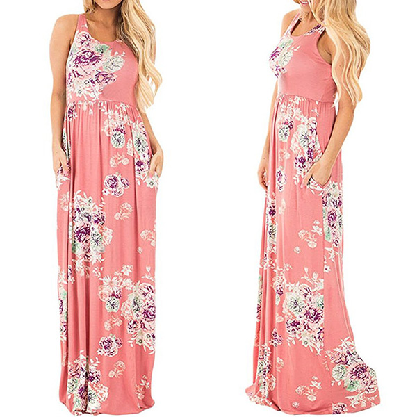 of romantic and playful vibe. It is styled with sleeveless,round neck and a maxi length,simple and classic.