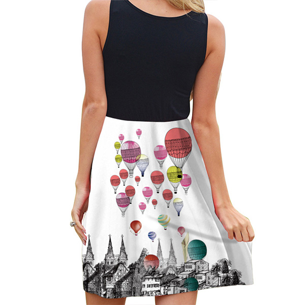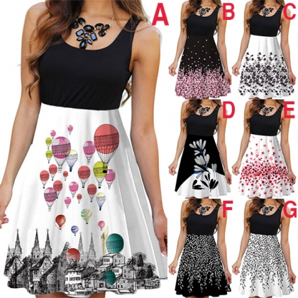 Fashion Sleeveless Round Neck Printed Spliced Dress