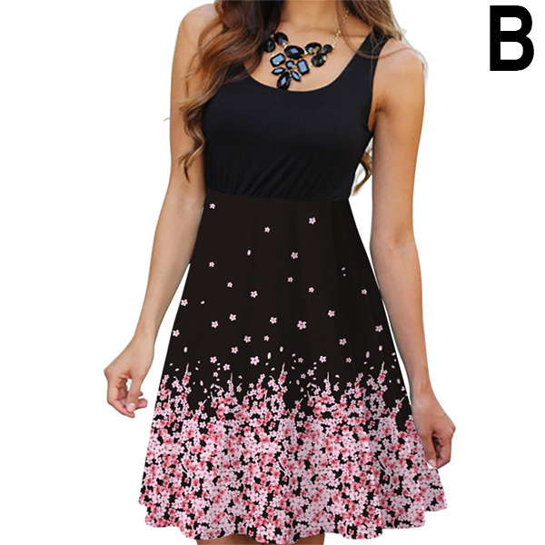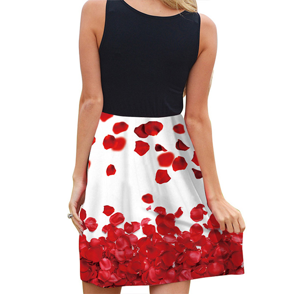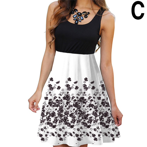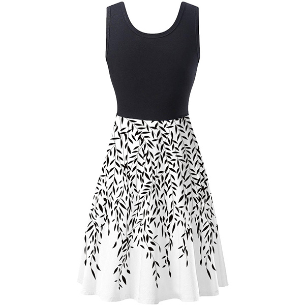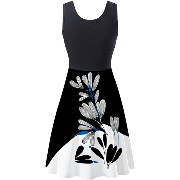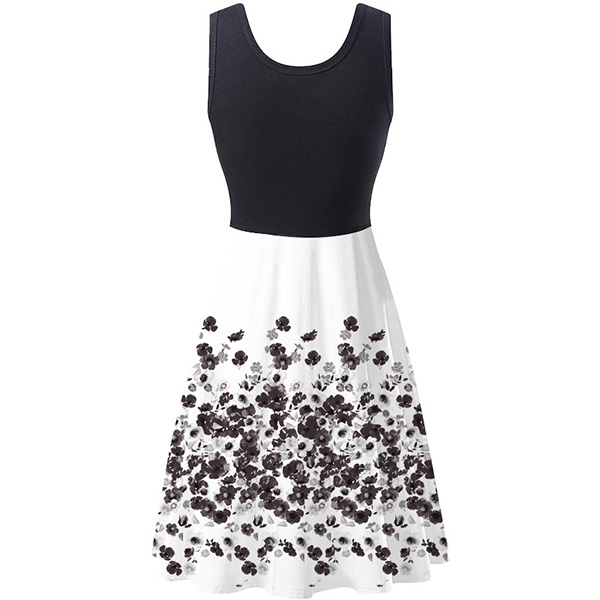Greet the sunny summer days with a simple,relaxed yet stylish dress. The printed spliced hem design breaks the simple and dull design style. Finished with sleeveless,round neck and high waist design,this dress knows how to give you a cozy yet stylish style.