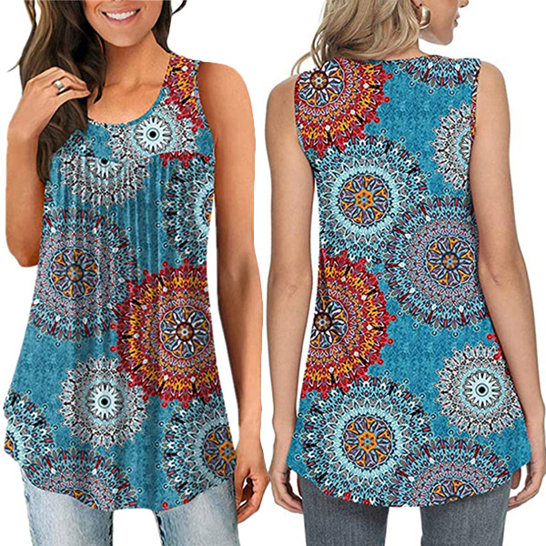 For the hot summer days,this sleeveless t-shirt would be your new favourite. Features chic printed details,finished with sleeveless and round neck design,this piece not only can give you a cool and comfortable day,but also can offer you different fashion styles by teaming with different style bottoms.