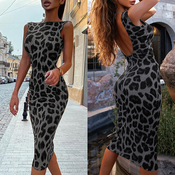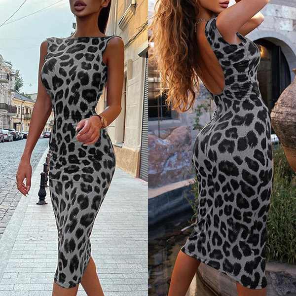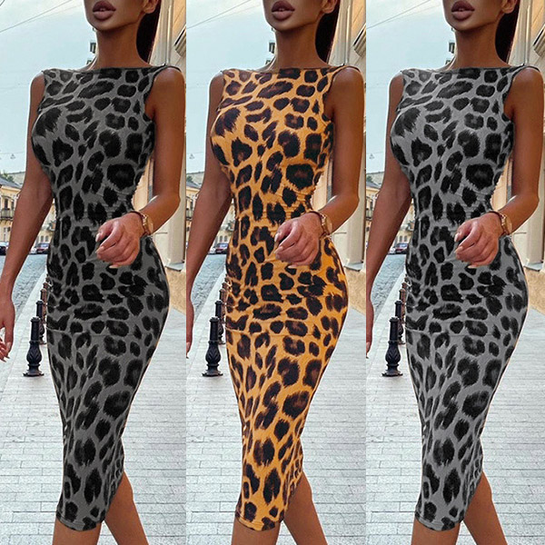 Fashion Sleeveless Round Neck Slim Fit Leopard Printed Tank Dress