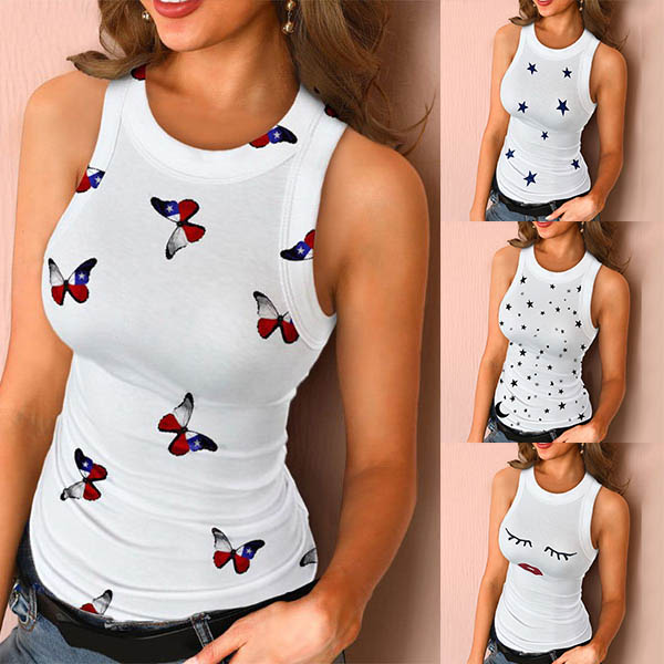 Fashion Sleeveless Round Neck Slim Fit Printed Top