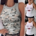 Fashion Sleeveless Round Neck Slim Fit Printed Top