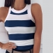 Fashion Sleeveless Round Neck Striped Top