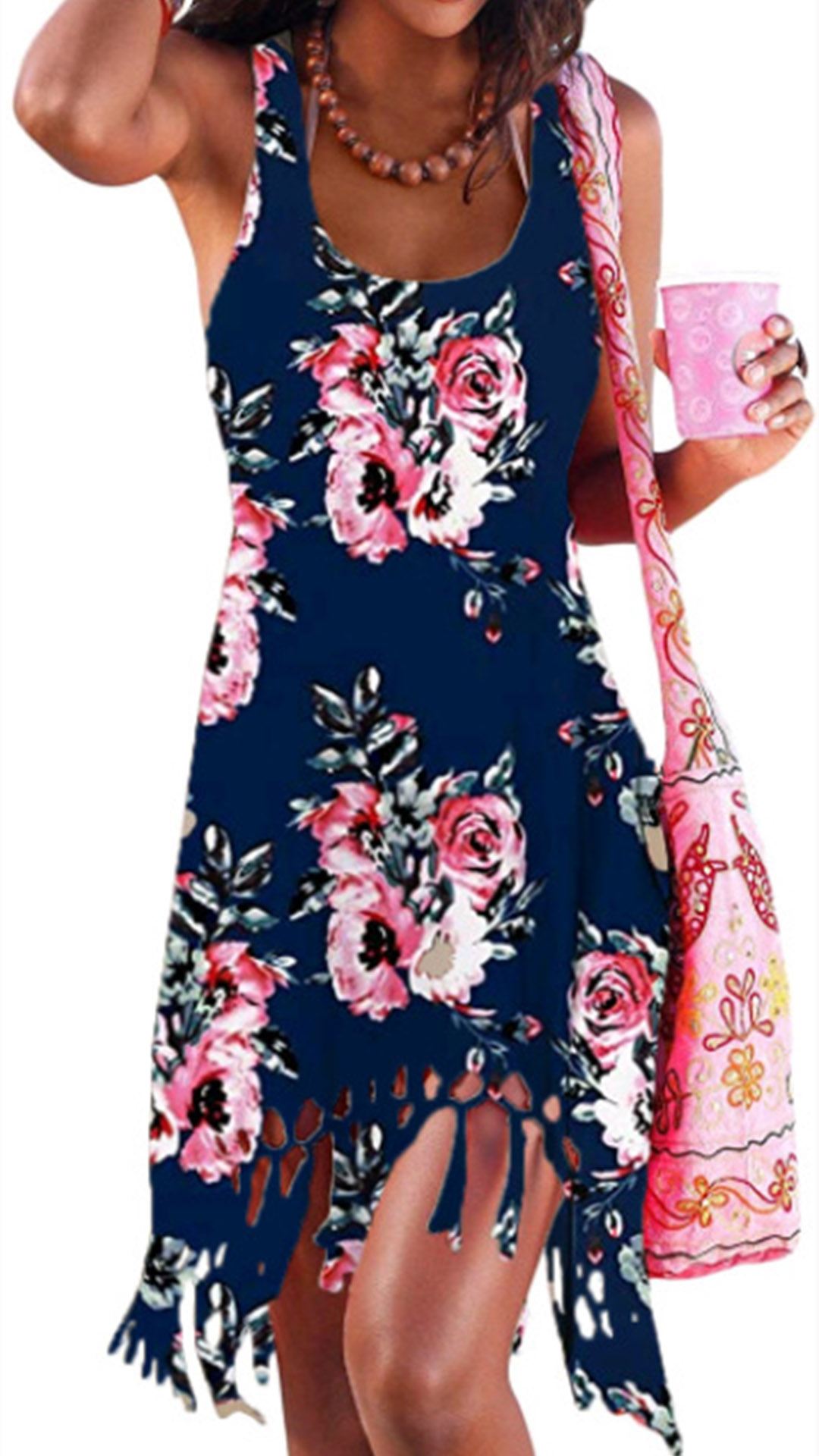 Greet the sun-soaked summer days with a relaxed piece such as this dress. It features chic printed details,which can help you catch more eyes. Moreover,the tassel hem design will make this piece look more attractive and distinctive. For your daily out,you can trust in this piece to help you gain more eyes.