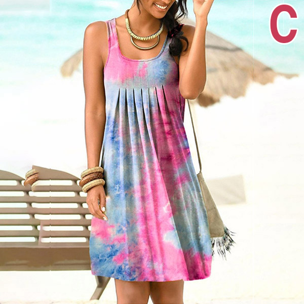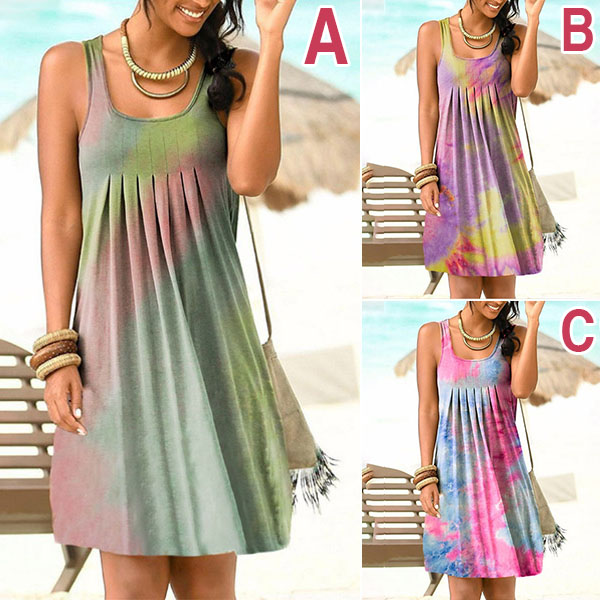 When the summer season hits,this sleeveless dress can easily arouse your attention. The tie-dye printed details make this piece full of style and charm,while its soft and breathable fabric will ensure you a comfortable day. Take interest in it to get prepared to look effortless stylish.
