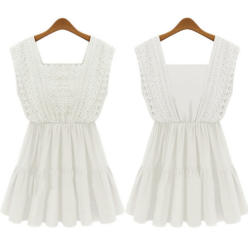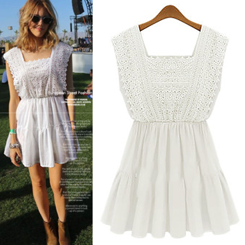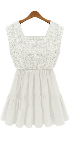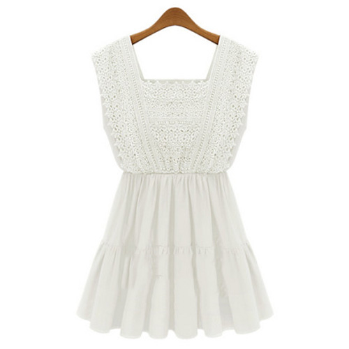 Fashion Sleeveless Square Neck Lace Crochet Spliced Dress