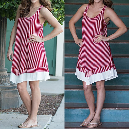 with sleeveless,u-neckline,an irregular hem and a loose silhouette,simple,cozy and fashion.