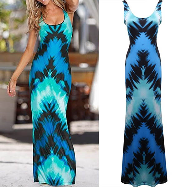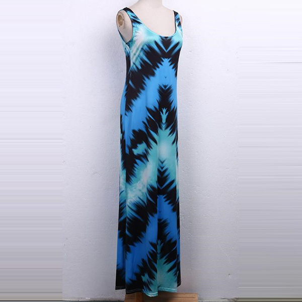Fashion Sleeveless U-neck Printed Maxi Dress