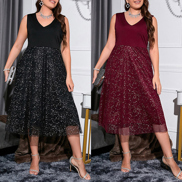 Fashion Sleeveless V-neck Bling-bling Fit & Flared Dress