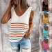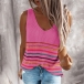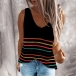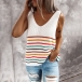 Like stripe element? Then this wonderful knit top can easily strike your mind! It is finished with sleeveless,v-neck and colorful striped element,this piece can keep you feeling comfy while it offers you a stylish daily style. You can match it with any bottom you like to enjoy your day!