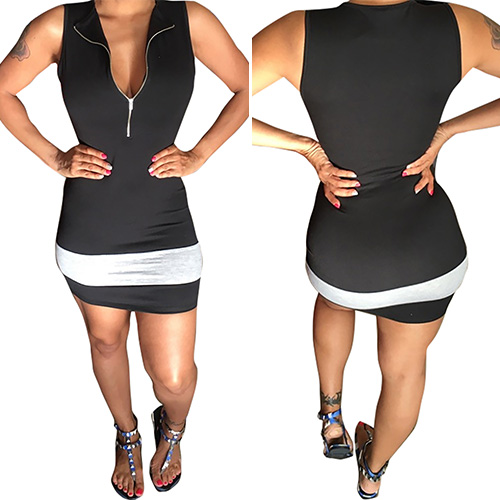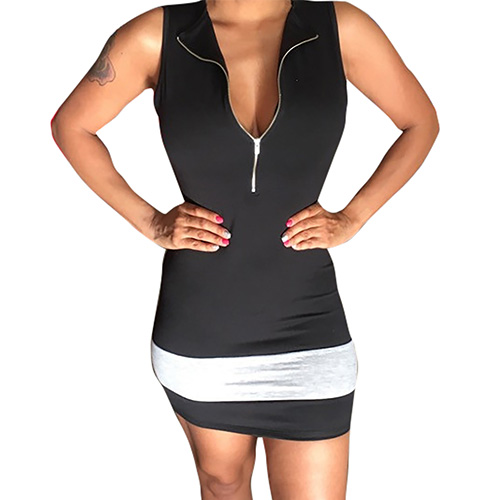 outfitted with sleeveless,a zipper v-neckline and a super fit silhouette, this dress can help you make the