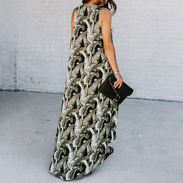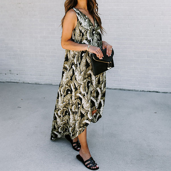 When strolling on the street with this dress,you can easily be a pleasant sight to draw more attention. Features chic printed details,with sleeveless,v-neck and a high-low hem design,this dress definitely can give you a cozy yet stylish style.