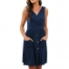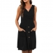 For your summer days,this sleeveless dress can be your perfect choice. Solid color style,the v-neck,front-pocket and button details make this piece look so stylish and attractive,while the high waist design can showcase your slender figure. So why not slip into this dress to have a delightful day?