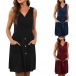 Fashion Sleeveless V-neck High Waist Front-button Solid Color Dress